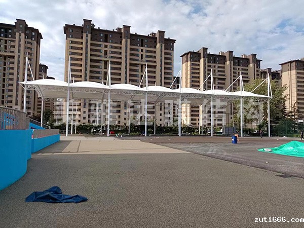 鲁能小学操场风雨棚膜结构工程顺利竣工